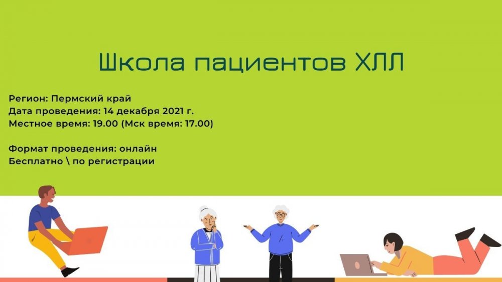 Namitova Posted November 29, 2021 Author Share Posted November 29, 2021 14 декабря 2021 г. в 19.00 (местное время) в Пермском крае состоится Школа для пациентов с заболеванием хронический лимфолейкоз. Формат проведения: онлайн Программа мероприятия: - «ХЛЛ: общие вопросы» - лектор: Шутылев Антон Аркадьевич, главный внештатный гематолог Министерства здравоохранения Пермского края, врач гематолог-онколог ГБУЗ ПК «Ордена «Знак почета» «Пермская краевая клиническая больница»; - «Пациент с ХЛЛ в практике участкового терапевта» - лектор: Ковалева Анастасия Васильевна, участковый терапевт, поликлиника ГБУЗ ПК «ГКБ №3», - «ХЛЛ – образ жизни!» - лектор: Скворцова Елена Ивановна, волонтер ВООГ «Содействие», пациент с ХЛЛ, г. Пермь; - «Региональные новости» - лектор: Намитова Светлана Анатольевна, региональный представитель ВООГ «Содействие» в Пермском крае; - Вопросы и ответы онлайн. Приглашаем пациентов с ХЛЛ из Пермского края и ваших родственников. Участие «новичков» обязательное! Бесплатно. Регистрация по ссылке: https://events.webinar.ru/voogsodeystvie/9756089 Техническая информация: для участия рекомендуется: - при просмотре на компьютере - использовать Google Chrome последней версии; - при просмотре на сотовом телефоне, скачать и установить на телефон программу Webinar. До встречи, онлайн. Контактная информация: Намитова Светлана Анатольевна Региональный представитель ВООГ «Содействие» по Пермскому краю Телефон для связи: +7(919) 486-15-03, +7(950)451-53-09 (ватсап, вайбер, телеграмм) E-mail: sodepermkrai@yandex.ru Quote Link to comment Share on other sites More sharing options...